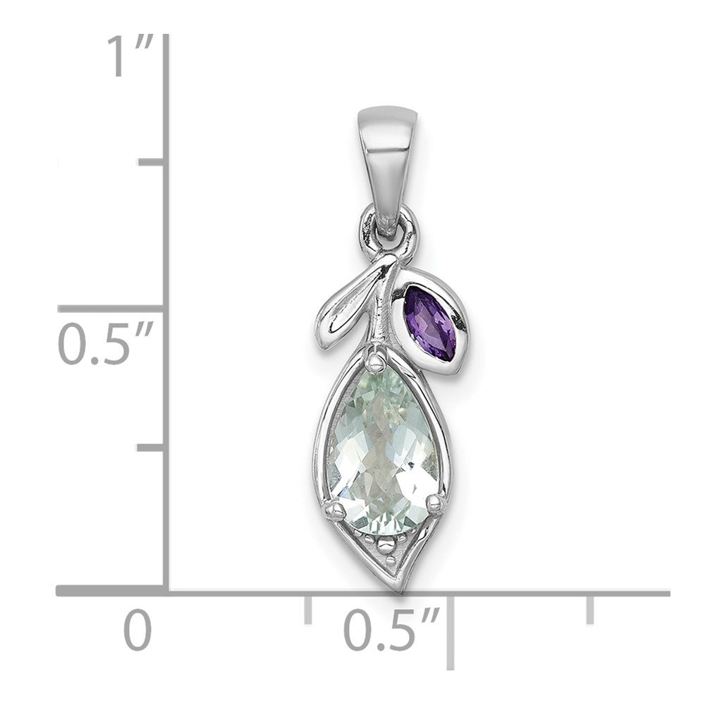 Sterling Silver Rhodium-plated Polished Amethyst and Green Quartz Leaf Pendant