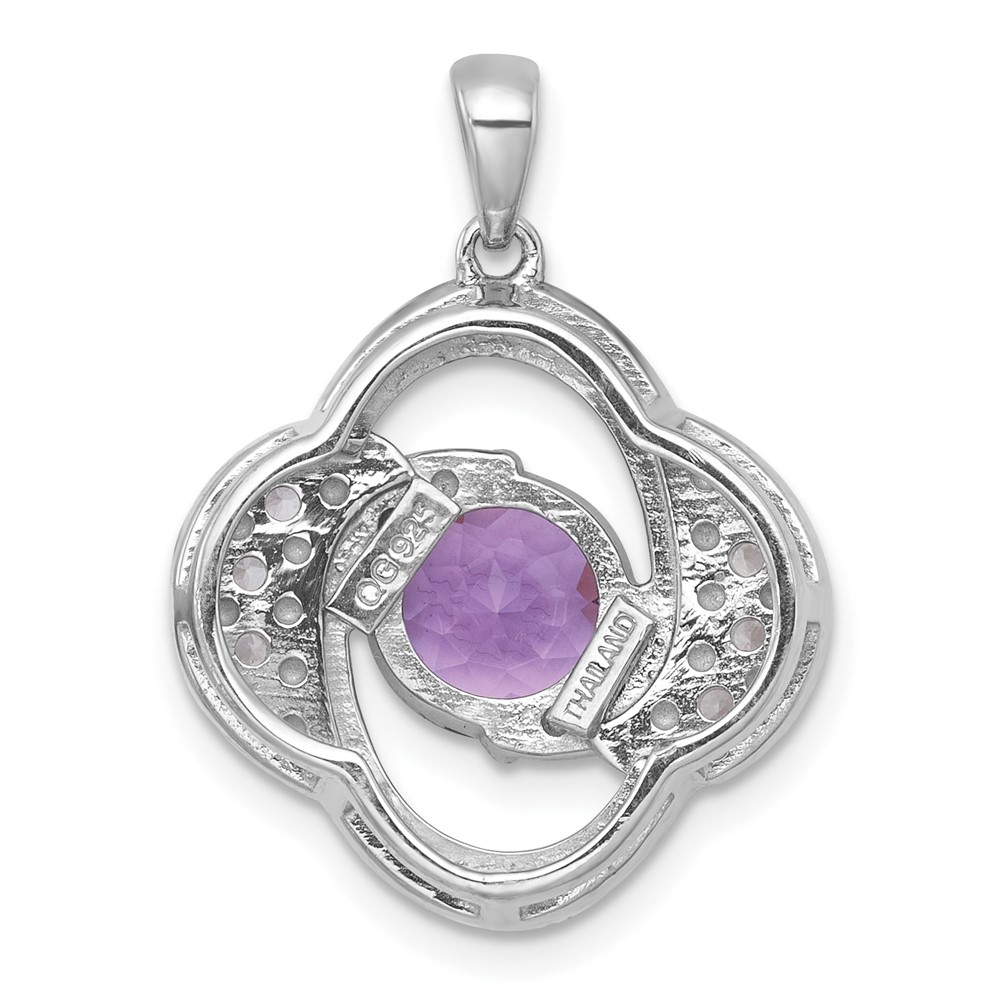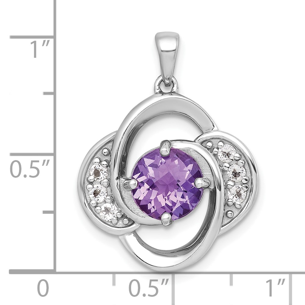 Sterling Silver Rhodium-plated Polished Checker-cut Round Amethyst and White Topaz Pendant