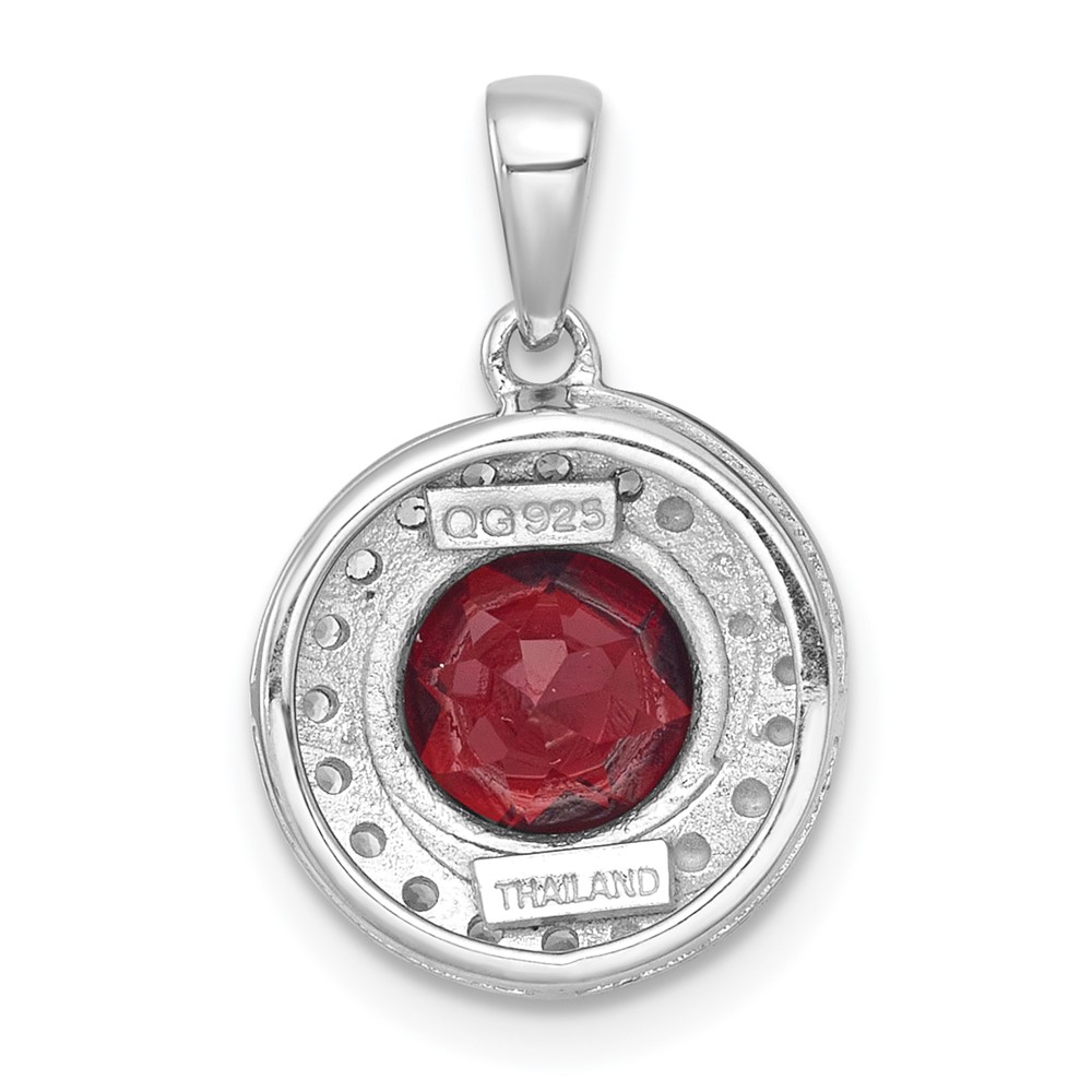 Sterling Silver Rhodium-plated Polished Checker-cut Round Garnet and White Topaz Circle Pendant