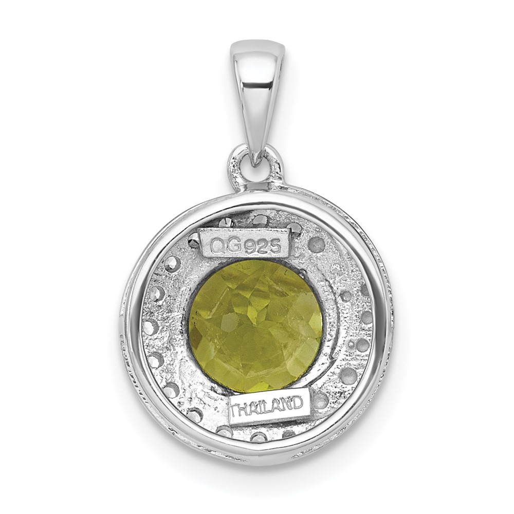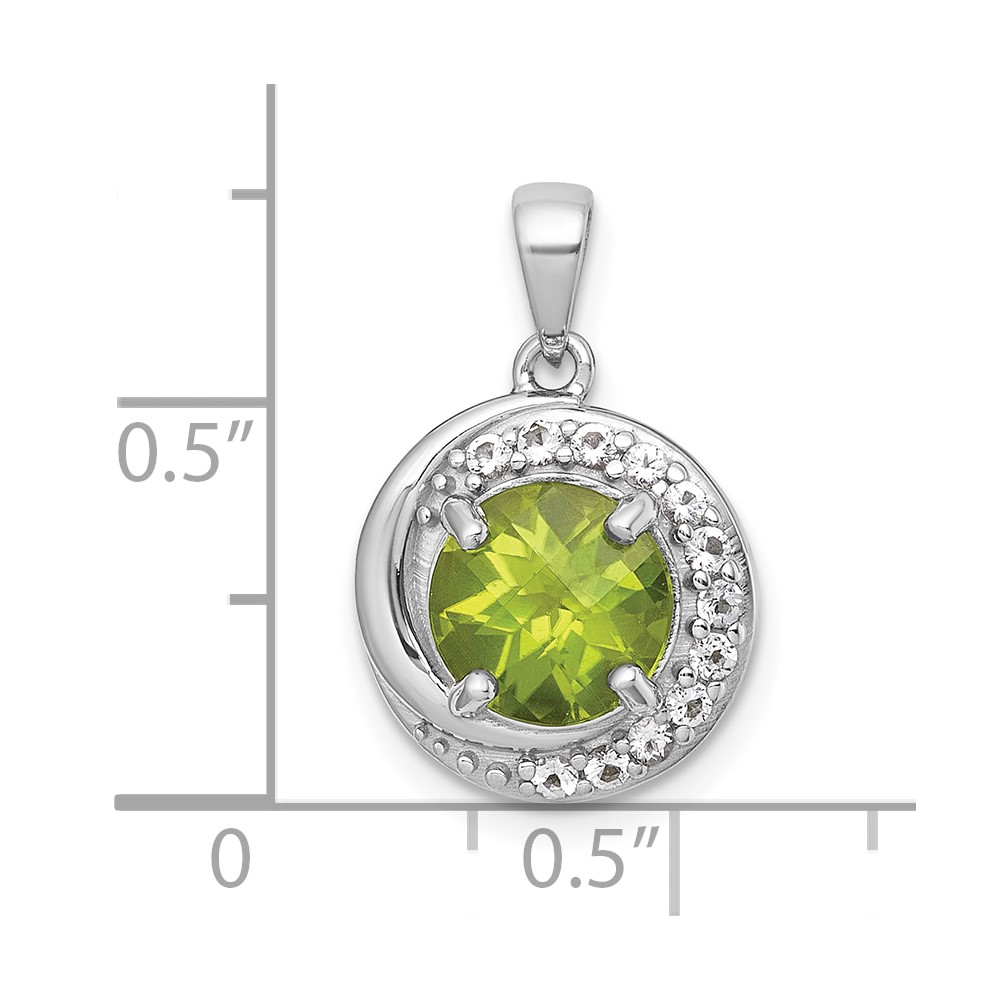 Sterling Silver Rhodium-plated Polished Checker-cut Round Peridot and White Topaz Circle Pendant