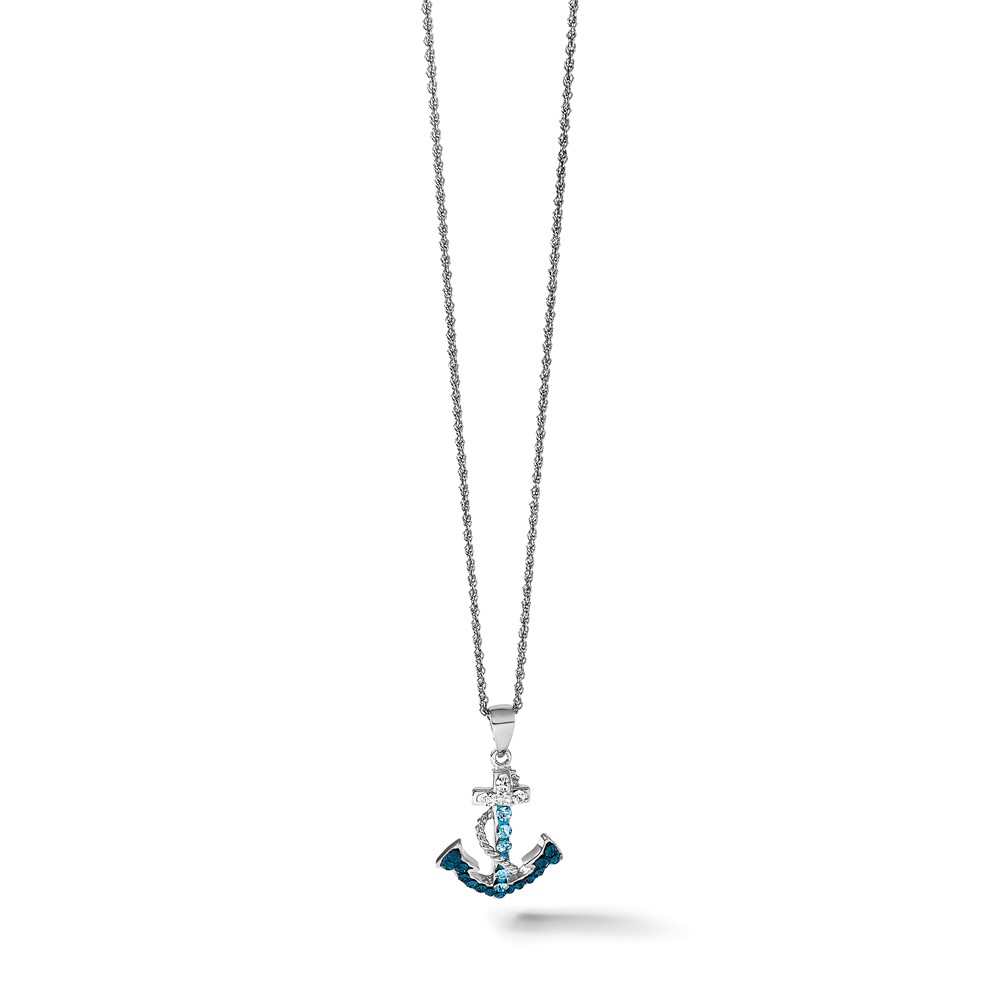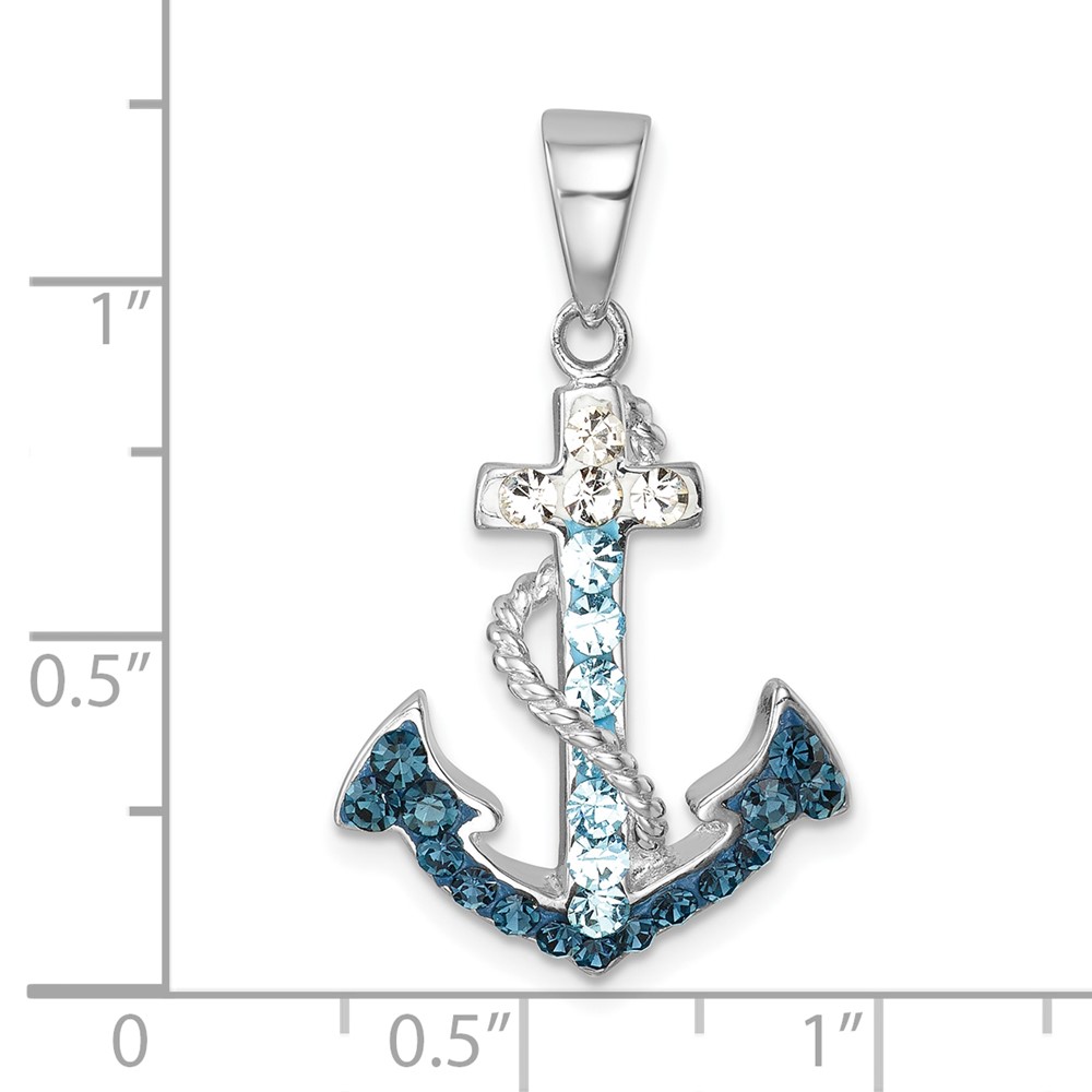 Sterling Silver Rhodium-Plated Polished Crystal Anchor Pendant