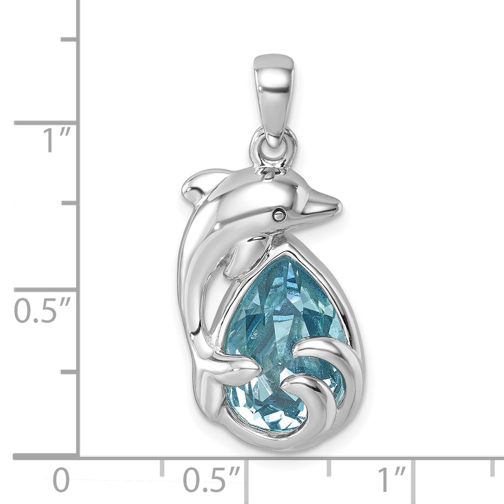 Sterling Silver Rhodium-plated Polished Crystal Dolphin Pendant