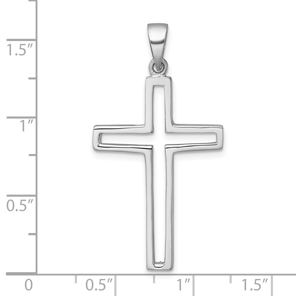 Sterling Silver Rhodium-plated Polished Cut-out Latin Cross Pendant