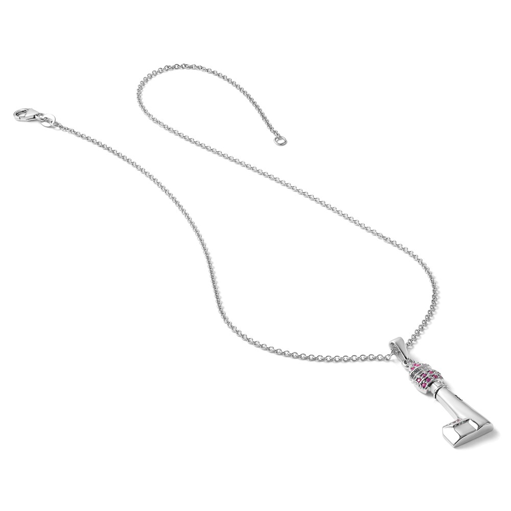 Sterling Silver Rhodium-Plated Polished CZ Cape May Lighthouse Pendant