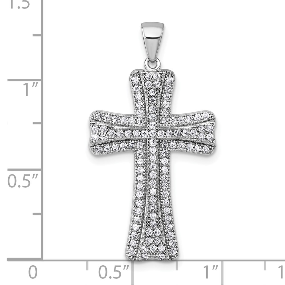 Sterling Silver Rhodium-plated Polished CZ Cross Pendant