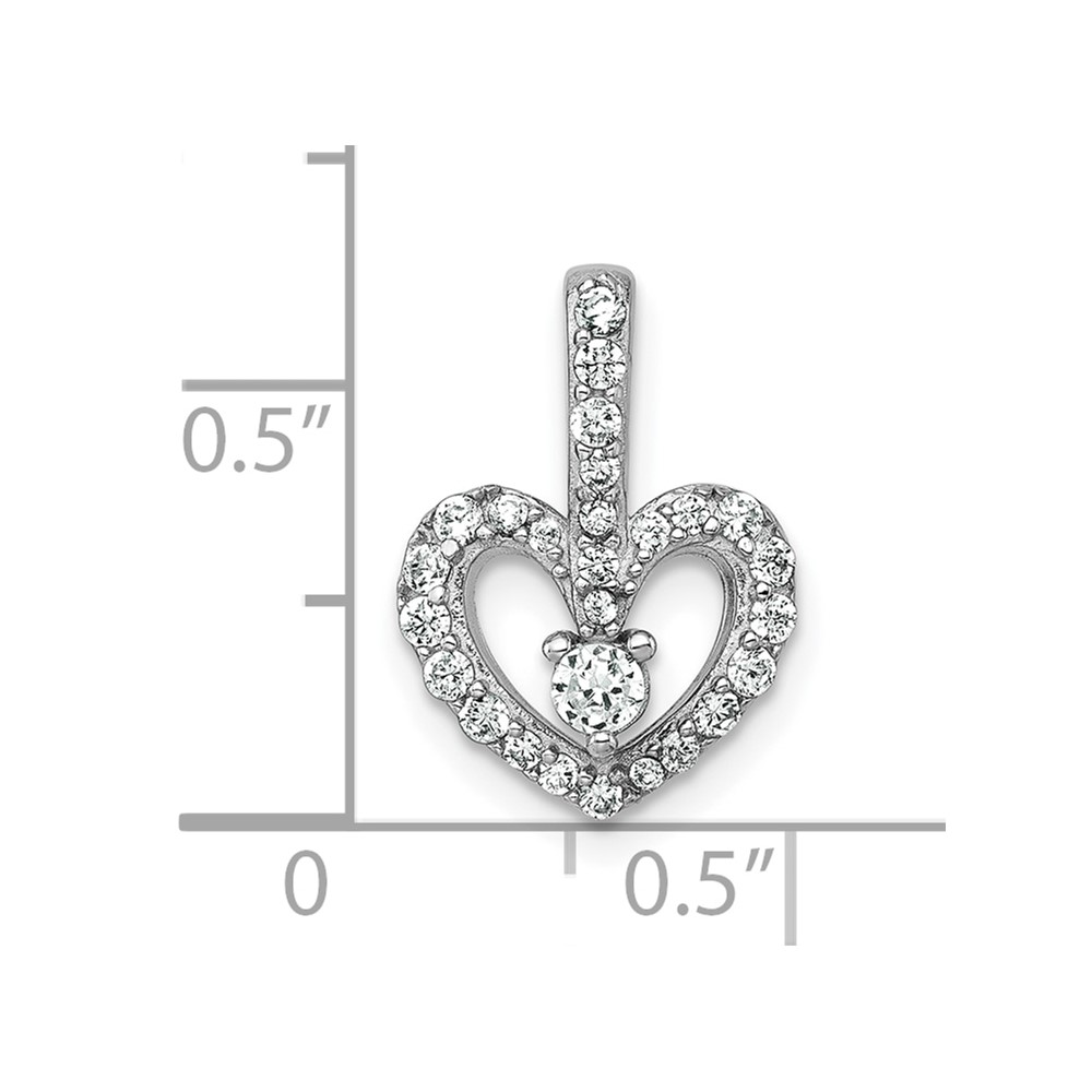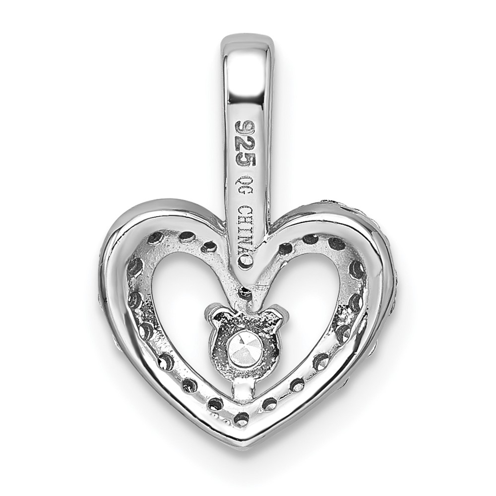 Sterling Silver Rhodium-plated Polished CZ Open Heart Pendant