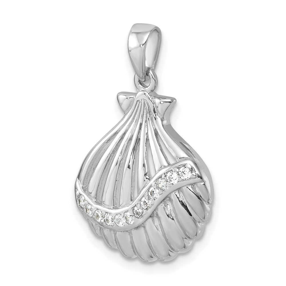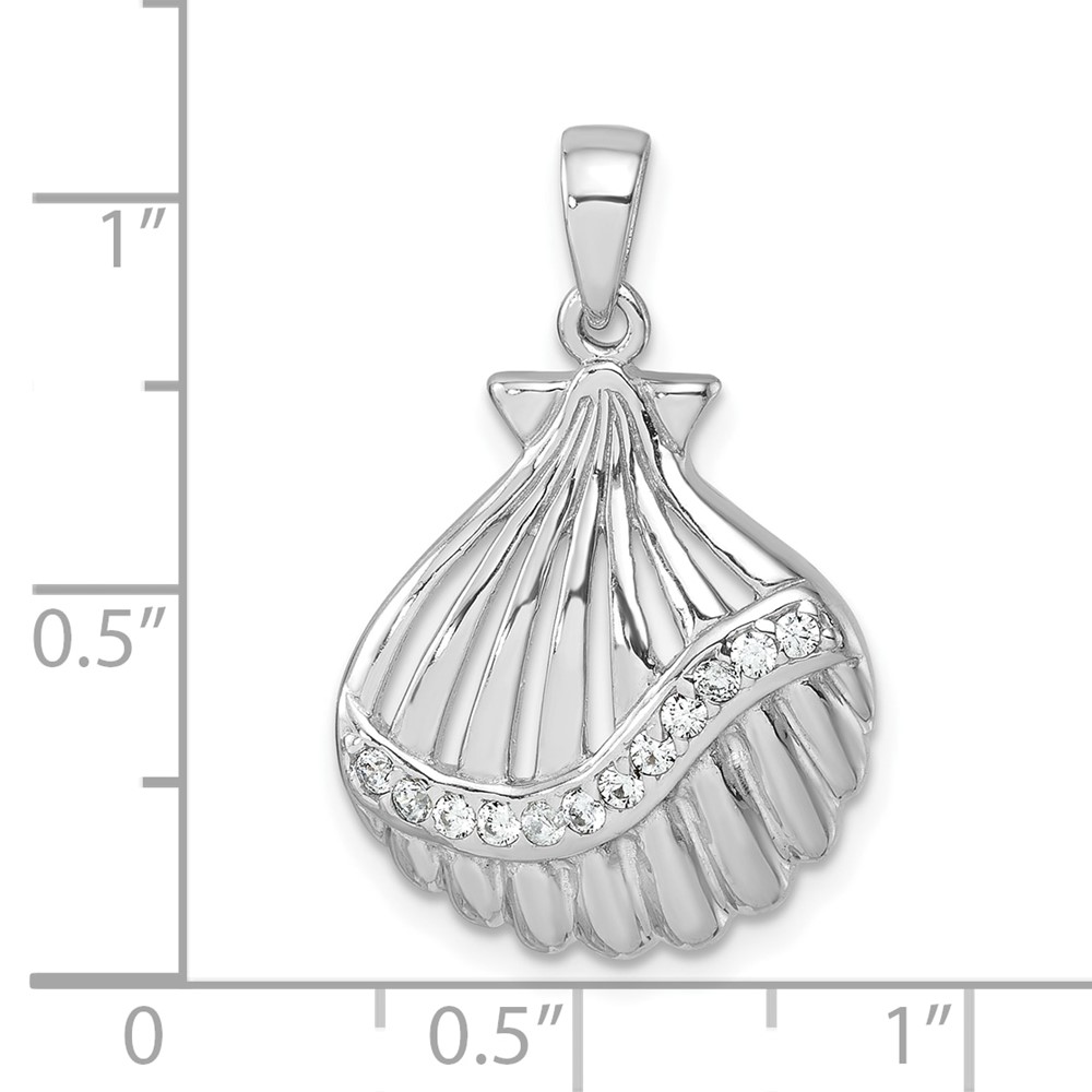 Sterling Silver Rhodium-plated Polished CZ Scallop Shell Pendant