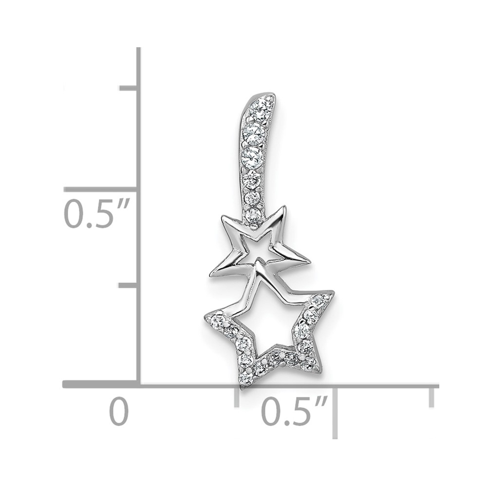Sterling Silver Rhodium-plated Polished CZ Shooting Stars Chain Slide Pendant
