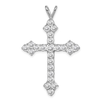 Sterling Silver Rhodium-plated Polished Fancy Budded Cross Pendant