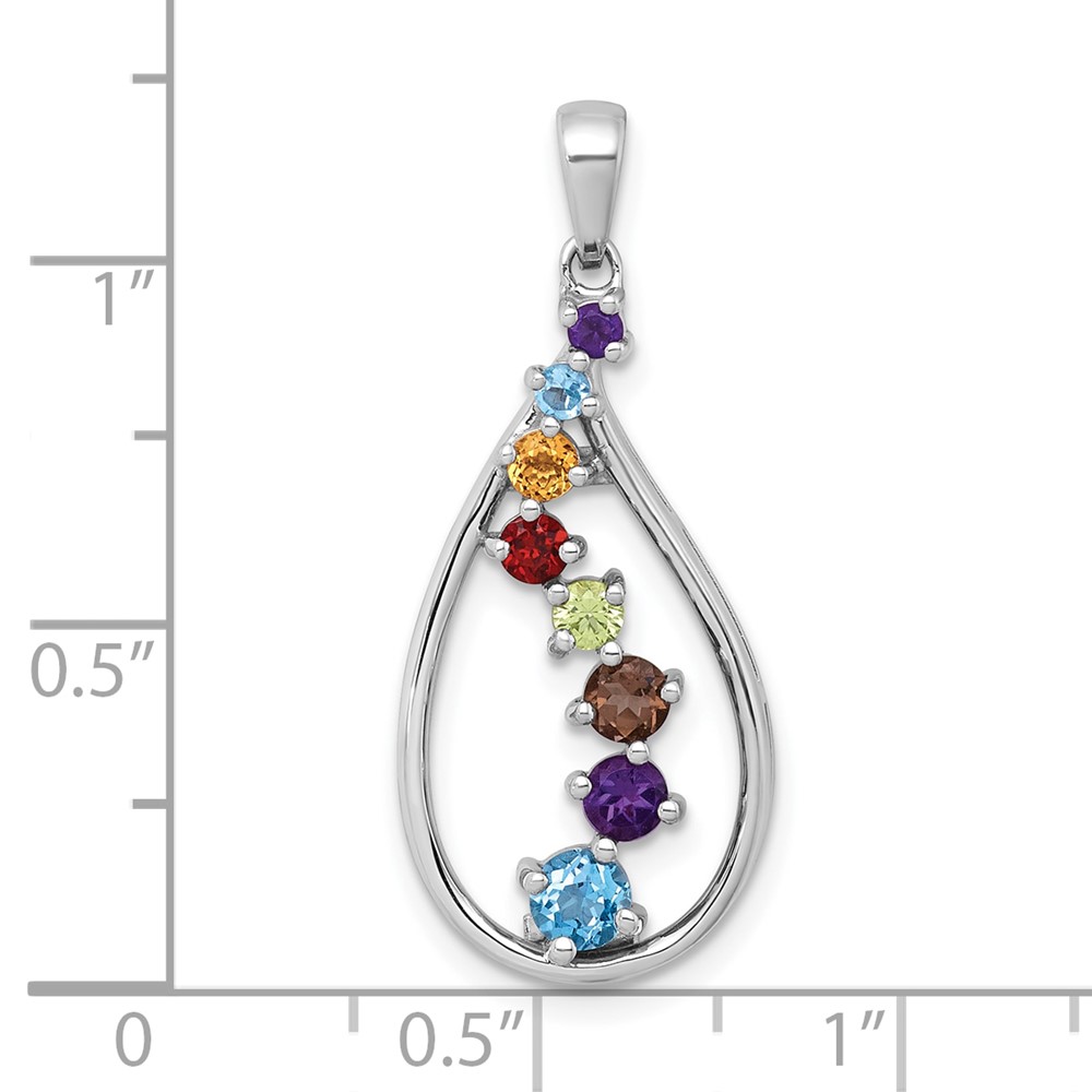 Sterling Silver Rhodium-plated Polished Fancy Multi Gemstone Teardrop Pendant
