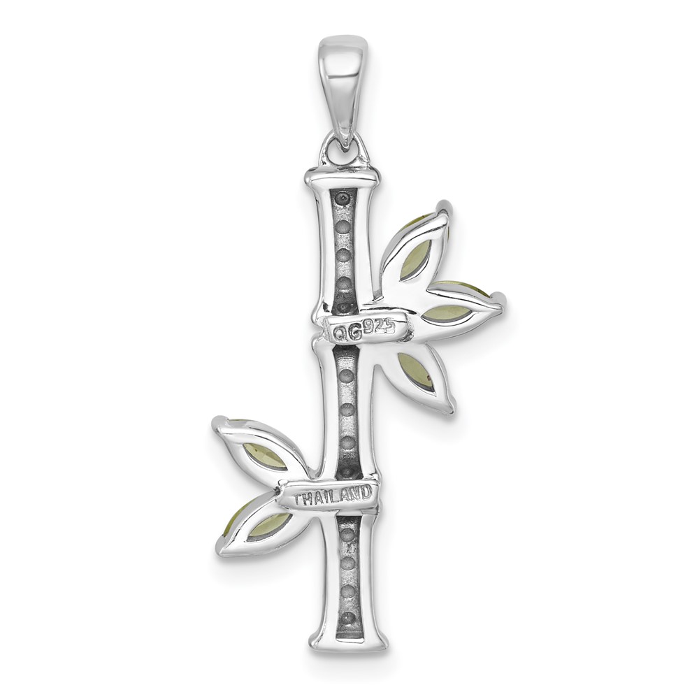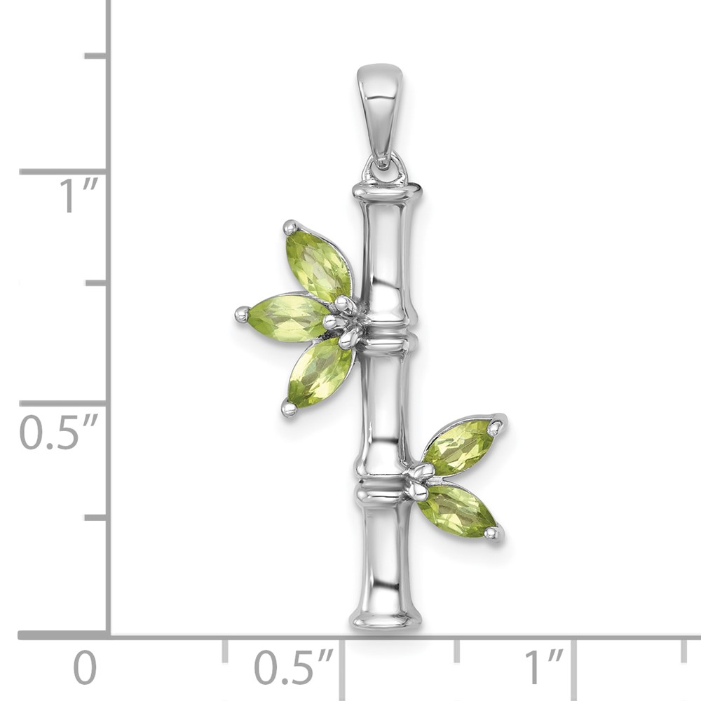 Sterling Silver Rhodium-plated Polished Fancy Peridot Bamboo with Leaves Pendant