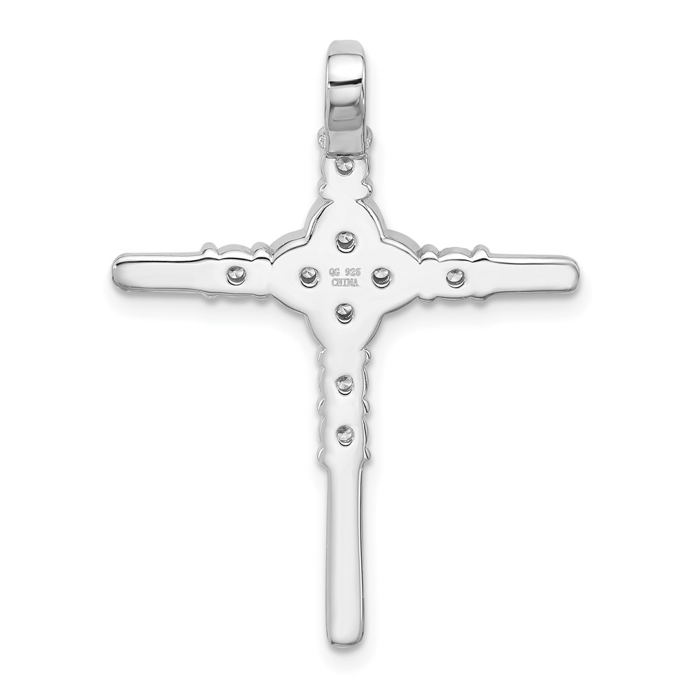 Sterling Silver Rhodium-plated Polished Flower CZ Cross Chain Slide
