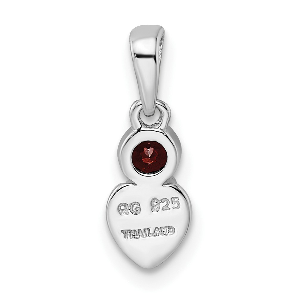 Sterling Silver Rhodium-plated Polished Garnet Heart Pendant