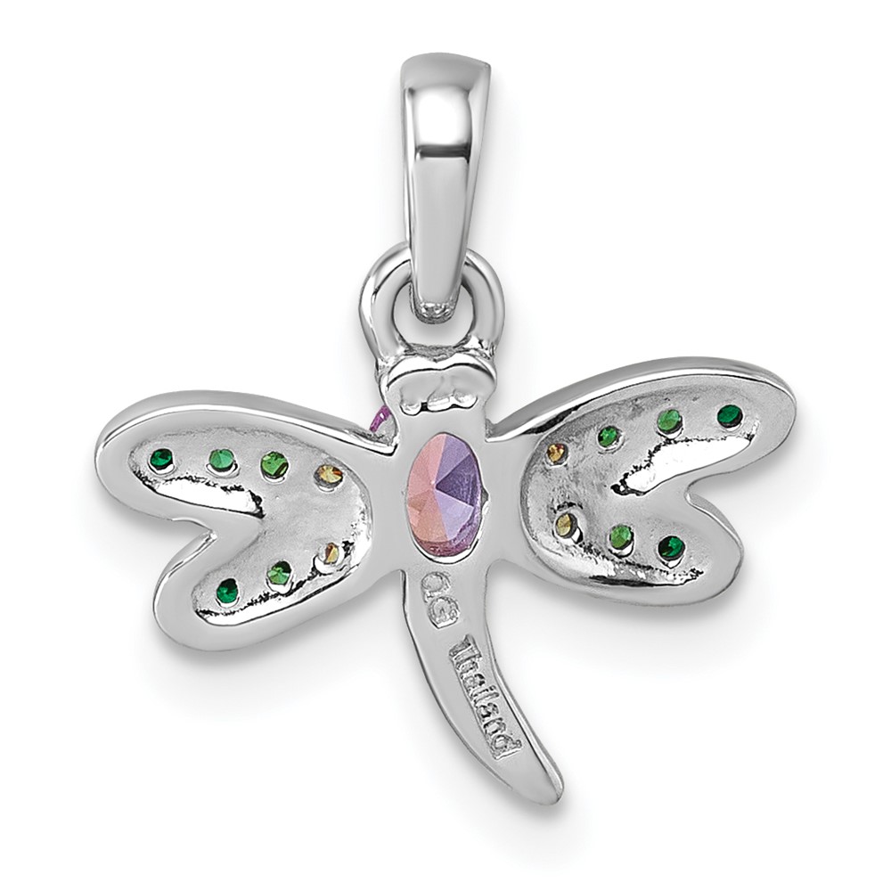 Sterling Silver Rhodium-plated Polished Green, Yellow and Pink CZ Dragonfly Pendant