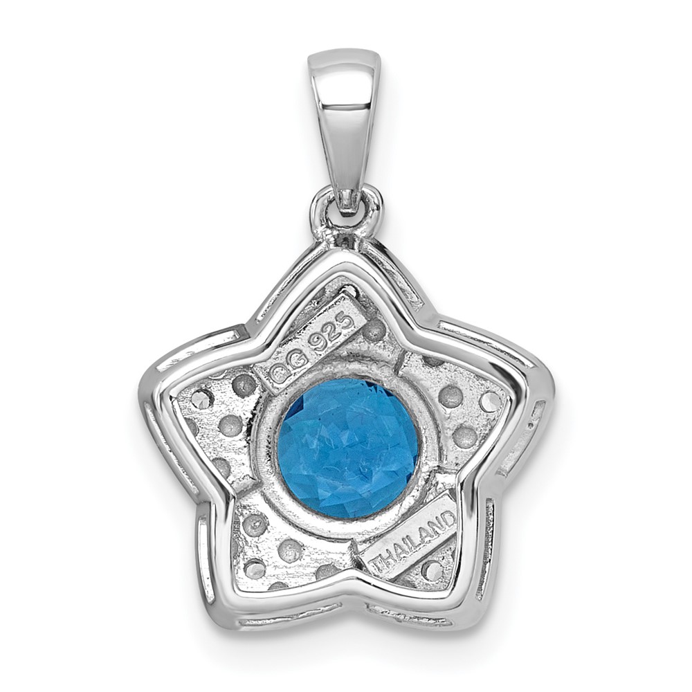 Sterling Silver Rhodium-plated Polished Light Swiss Blue Topaz and White Topaz Star Pendant