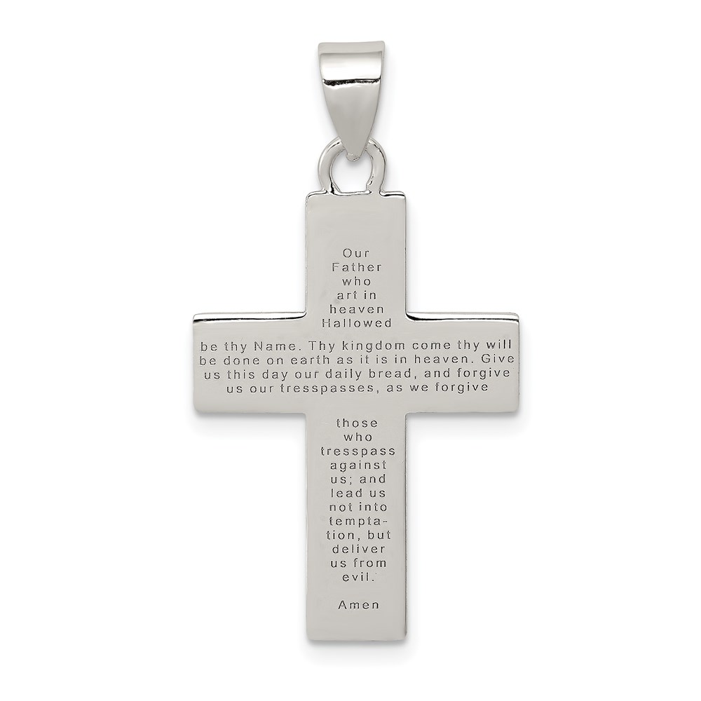Sterling Silver Rhodium-plated Polished Lords Prayer Cross Pendant