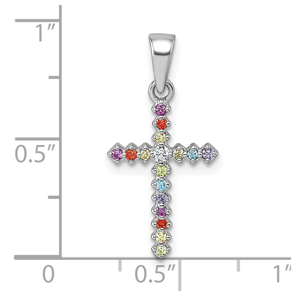 Sterling Silver Rhodium-plated Polished Multi-color CZ Cross Pendant