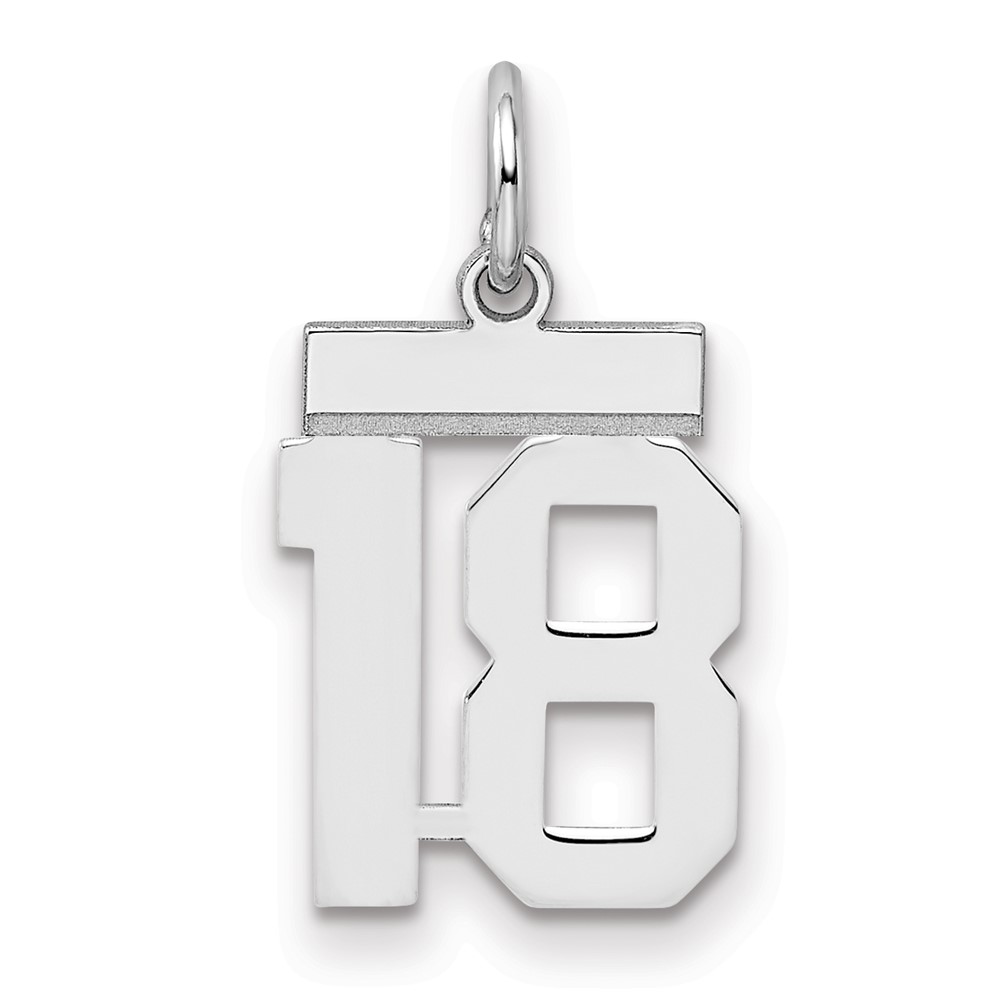 Sterling Silver/Rhodium-plated Polished Number 18 Charm