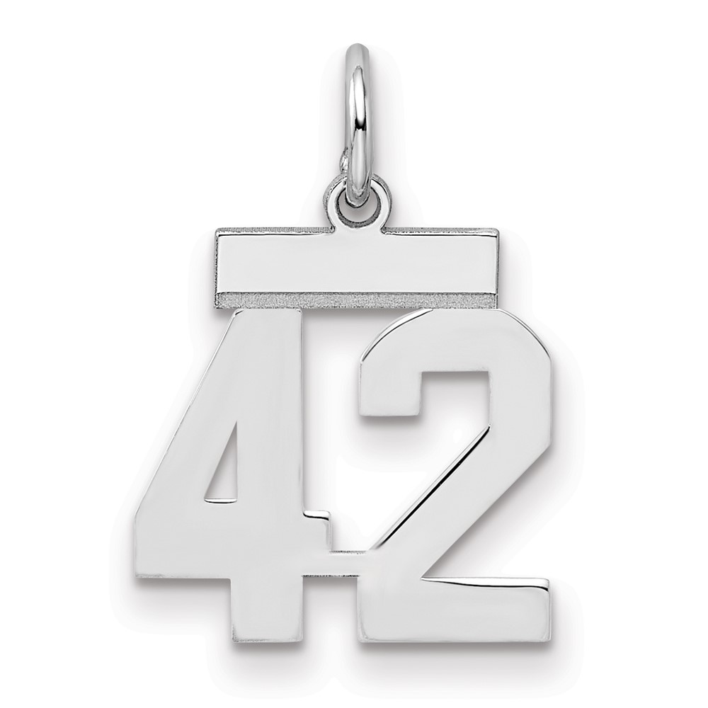 Sterling Silver/Rhodium-plated Polished Number 42 Charm