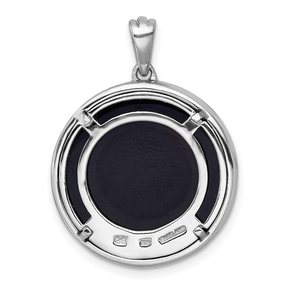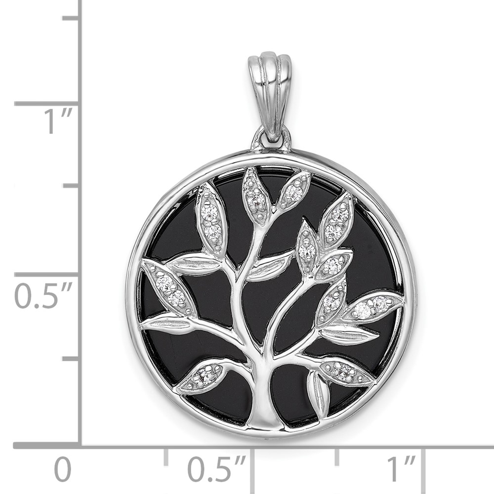 Sterling Silver Rhodium-plated Polished Onyx Circle and CZ Tree of Life Pendant