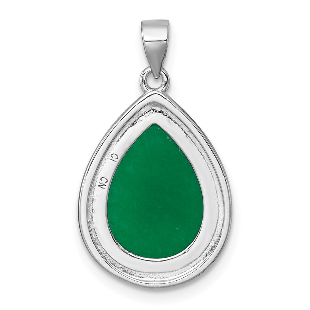Sterling Silver Rhodium-plated Polished Pear-Shaped Dyed Jade Quartz Cabochon Pendant