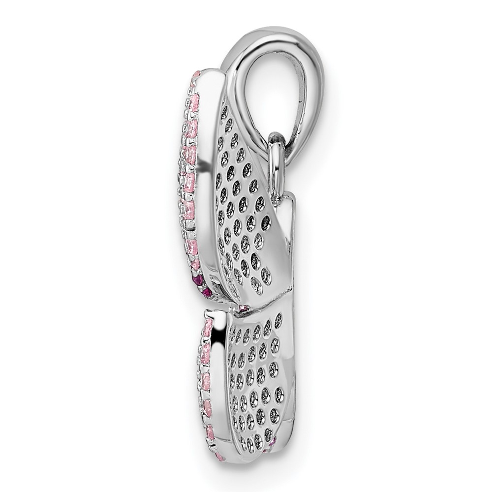 Sterling Silver Rhodium-plated Polished Pink CZ Butterfly Pendant