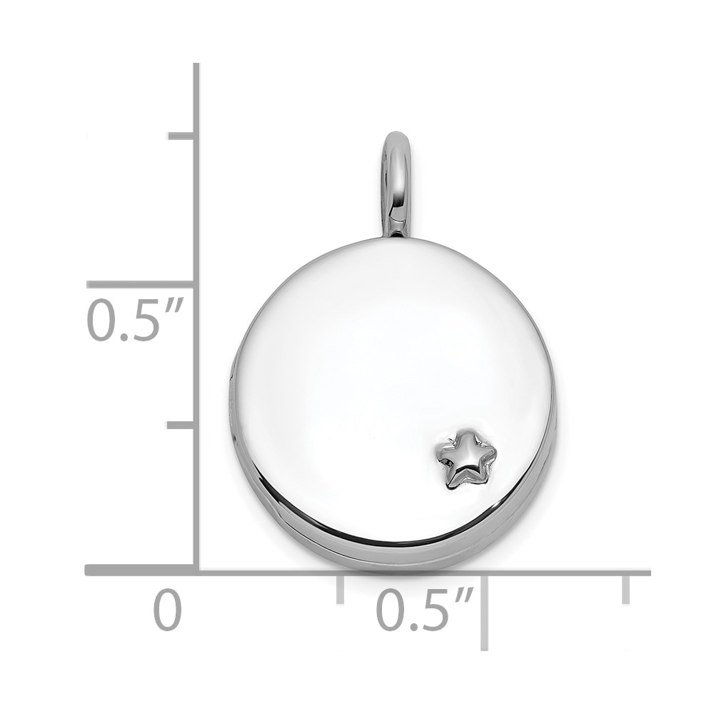 Sterling Silver Rhodium-plated Polished Star On 10mm Round Locket