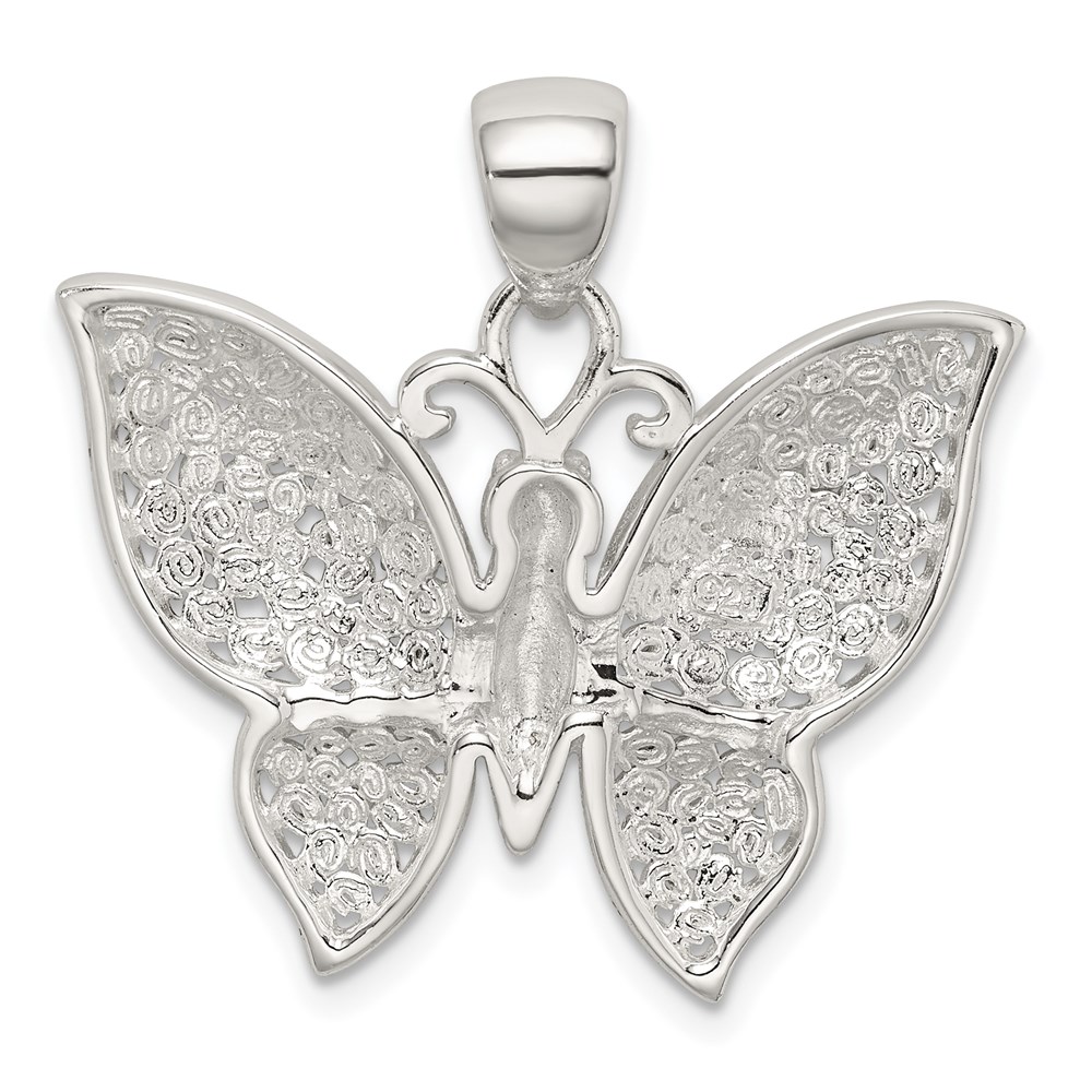 Sterling Silver Rhodium-plated Polished/Textured Butterfly Pendant