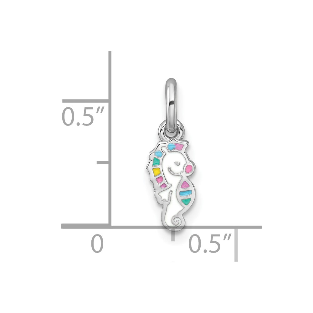 Sterling Silver Rhodium-plated Polished White and Rainbow Enamel Seahorse Childrens Pendant
