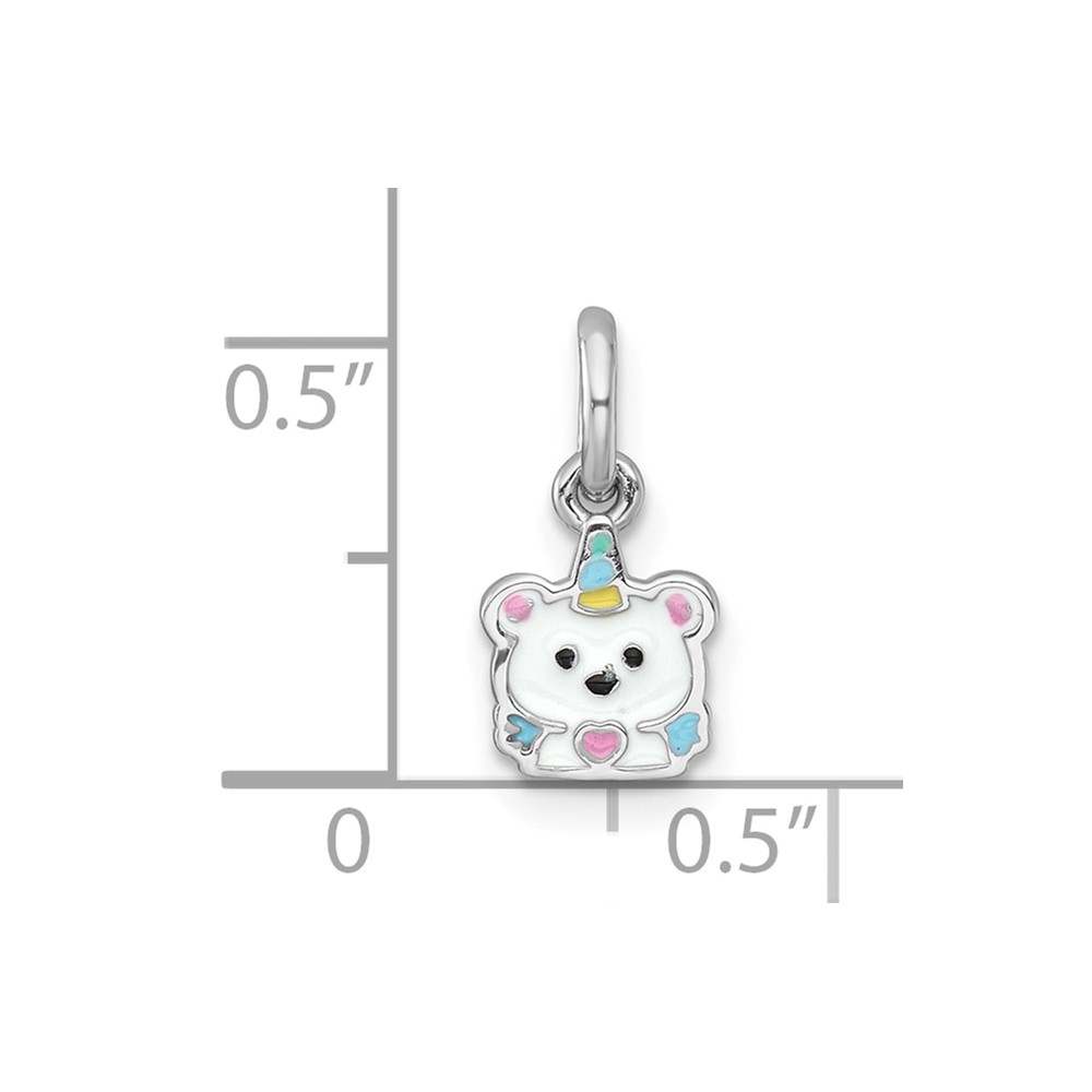 Sterling Silver Rhodium-plated Polished White and Rainbow Enamel Unicorn Polar Bear Childrens Pendant