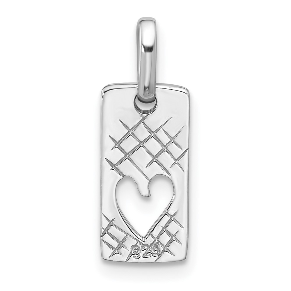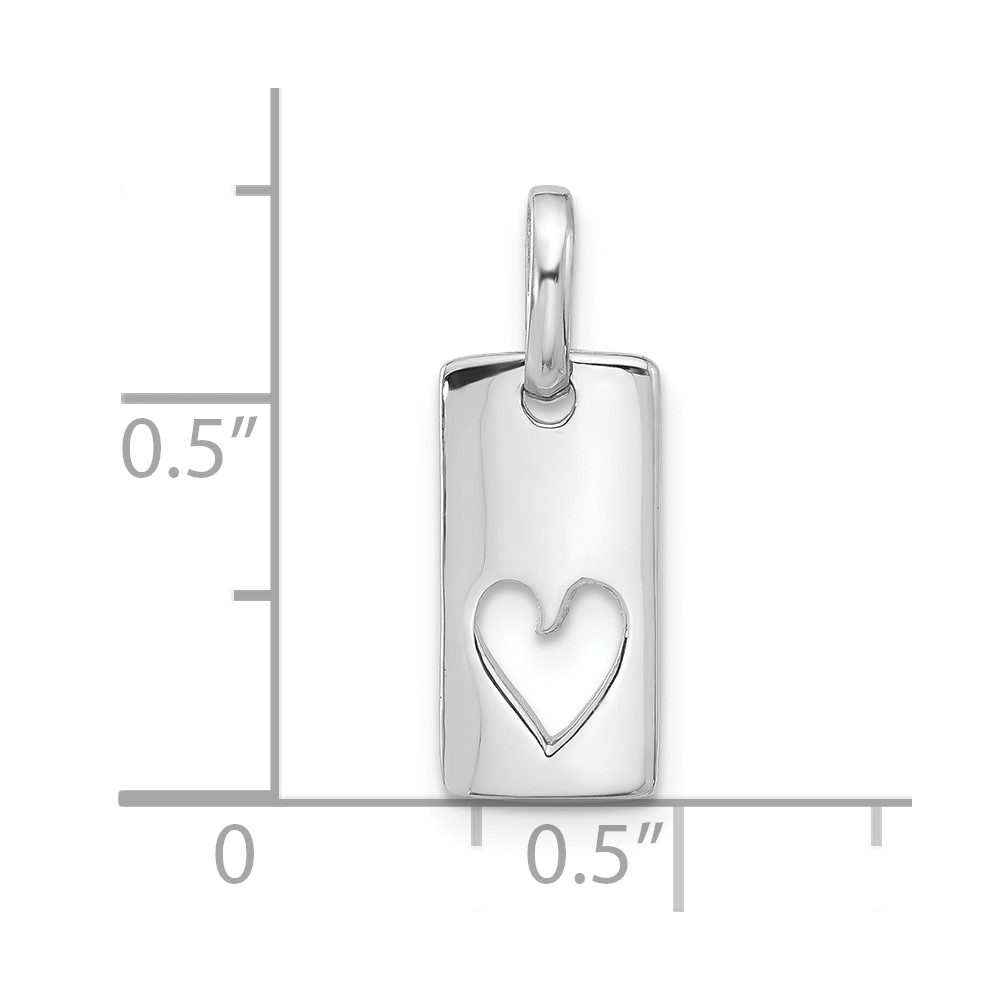 Sterling Silver Rhodium-plated Rectangle Cutout Heart Pendant