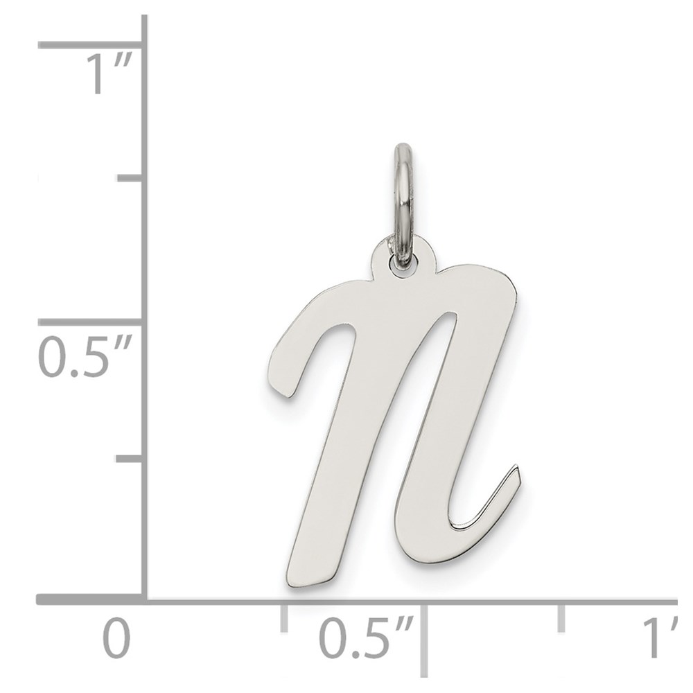 Sterling Silver Rhodium-plated Script Letter N Initial Charm