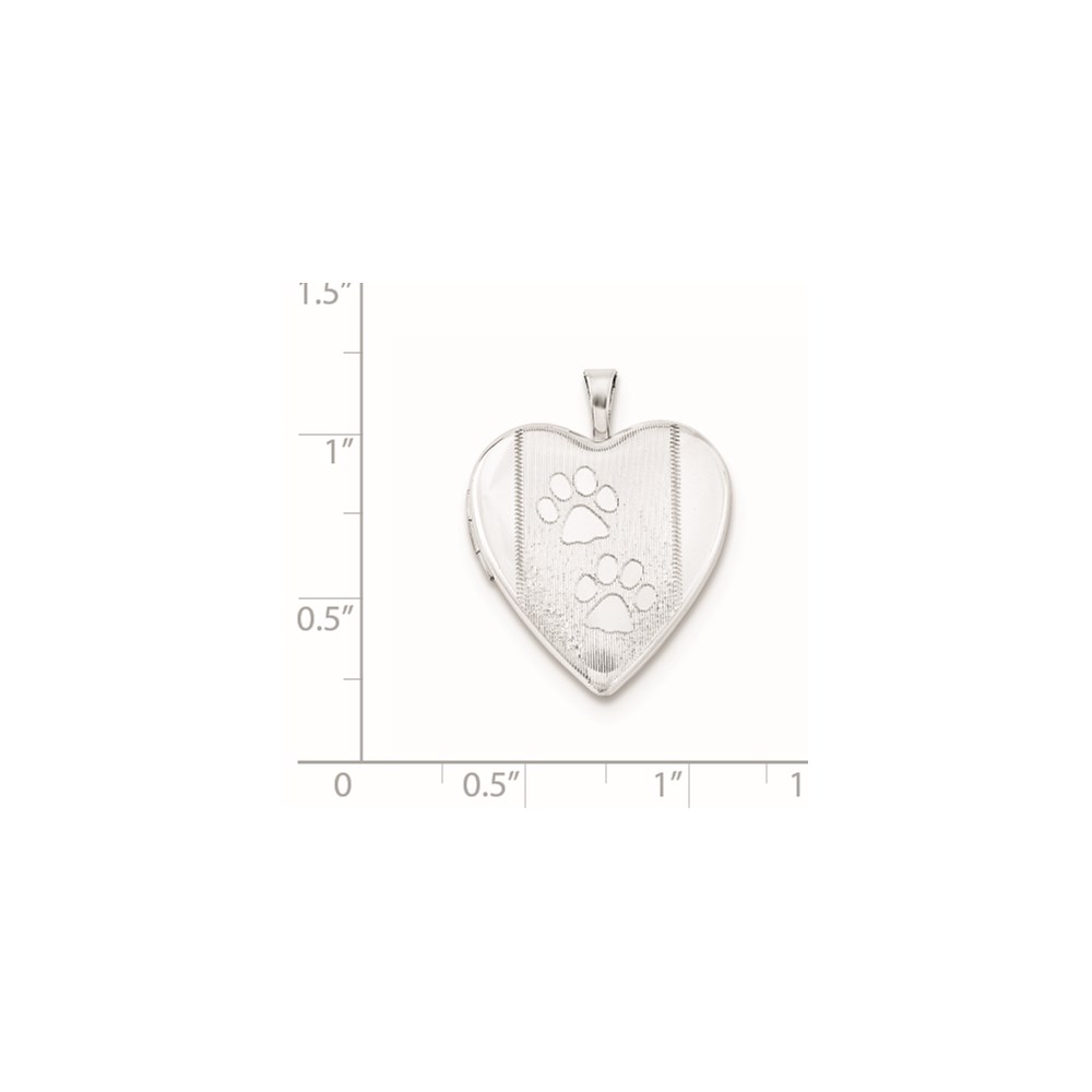 Sterling Silver Rhodium-plated Textured & Polished Paw Prints Heart Locket