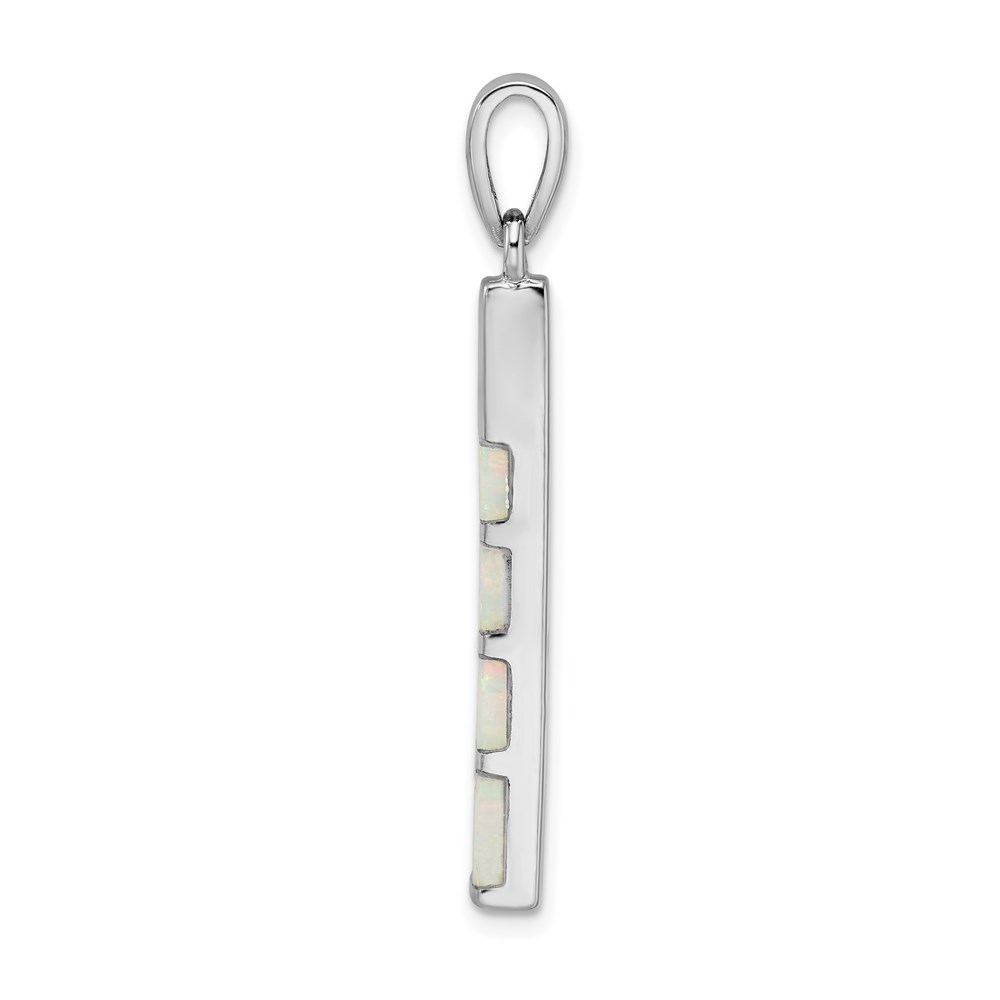 Sterling Silver Rhodium-plated White Created Opal Bar Pendant