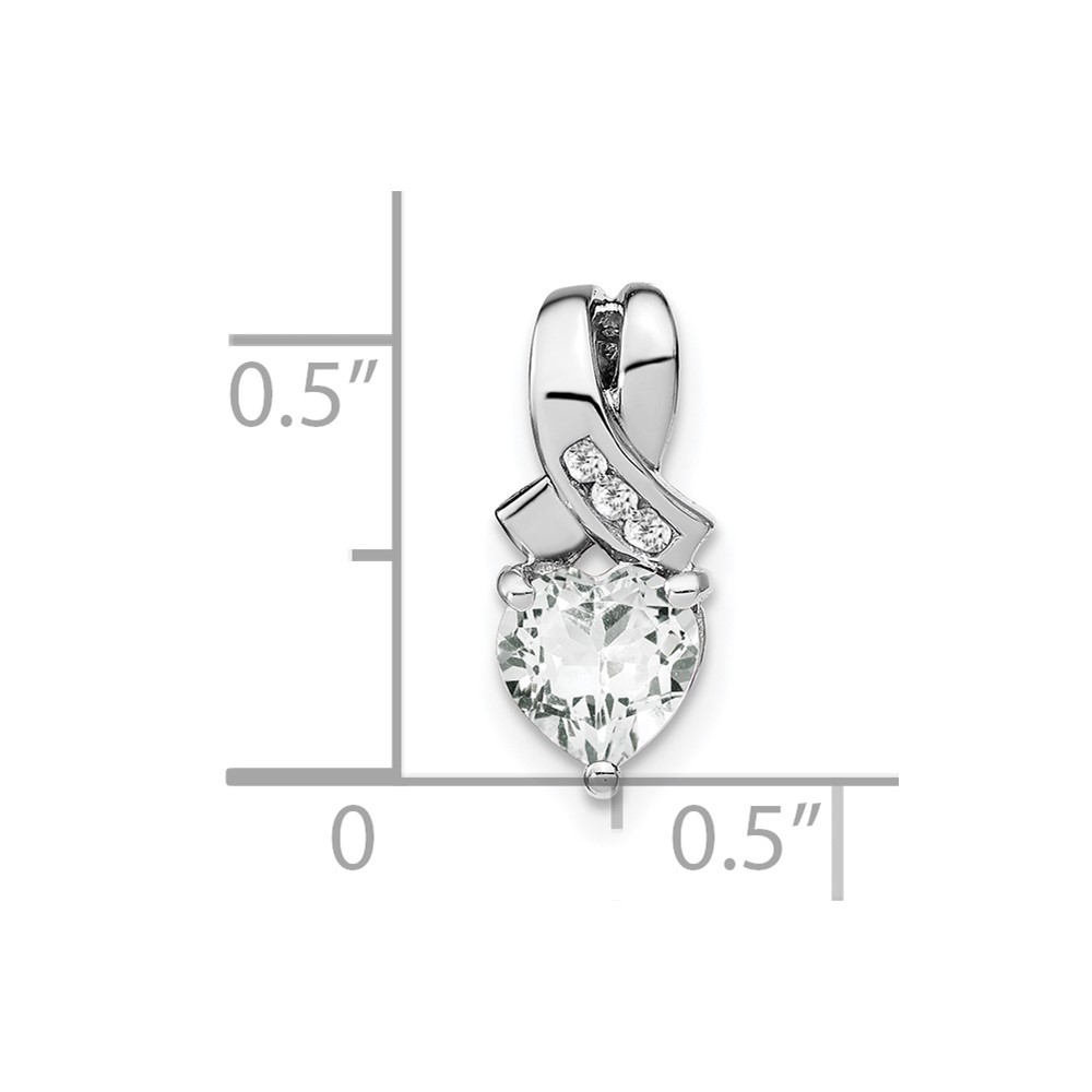 14k White Gold 7mm Cushion April/White Topaz and Diamond Heart Chain Slide