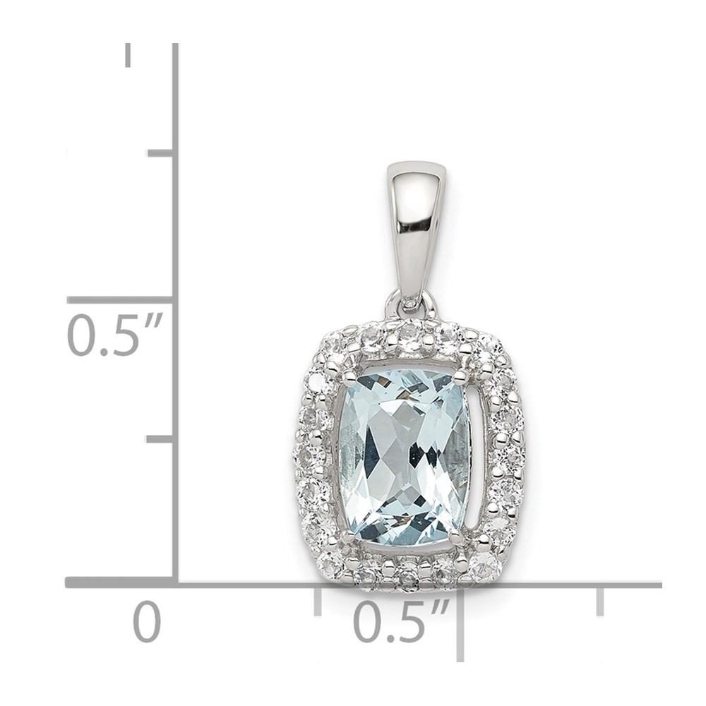Sterling Silver Rhodium Plated White Topaz & Aquamarine Pendant