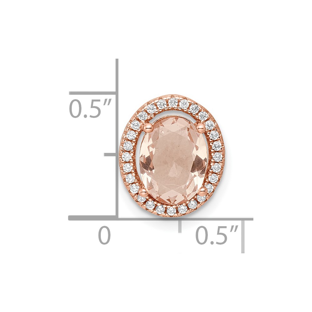 Sterling Silver Rose-tone Polished Pink & White CZ Oval Chain Slide