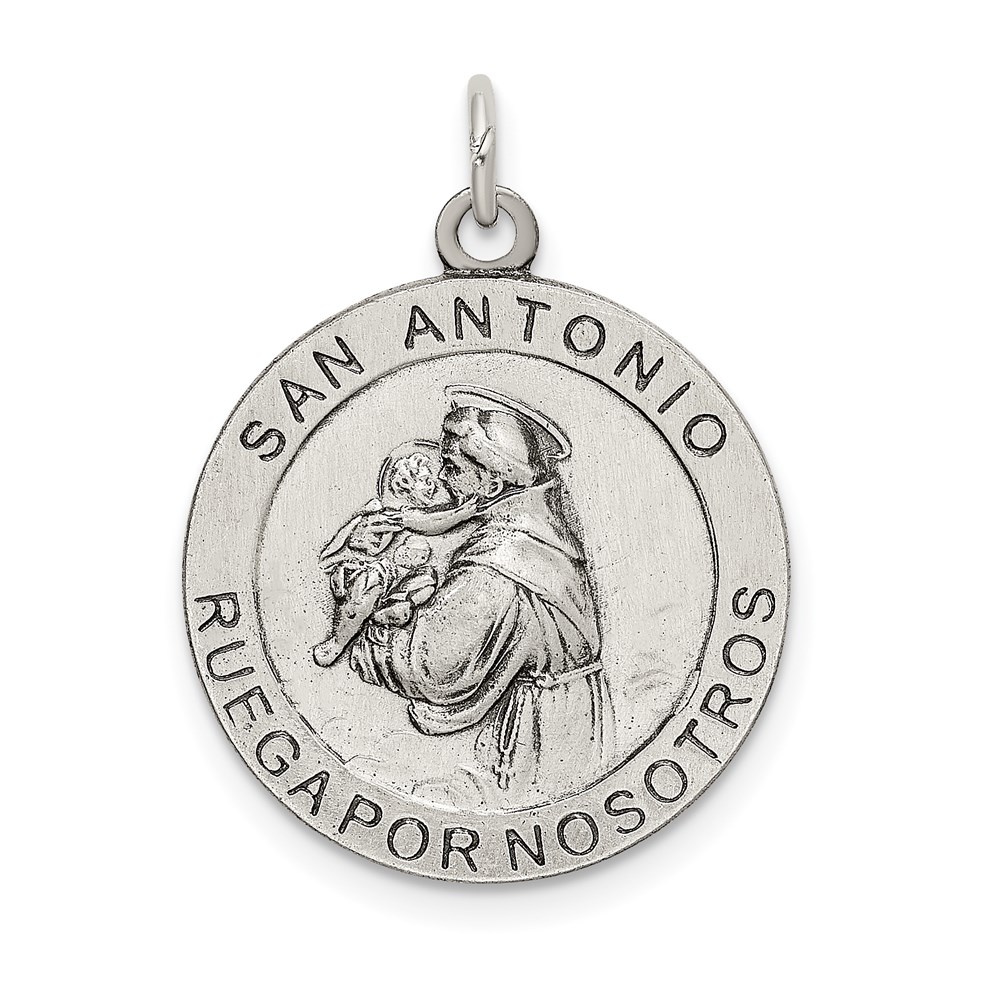 Sterling Silver Satin Antiqued Spanish St. Anthony Medal Pendant