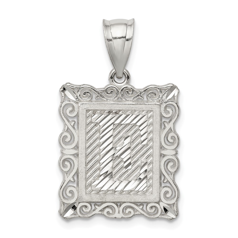 Sterling Silver Square Diamond-cut Letter E Initial Pendant