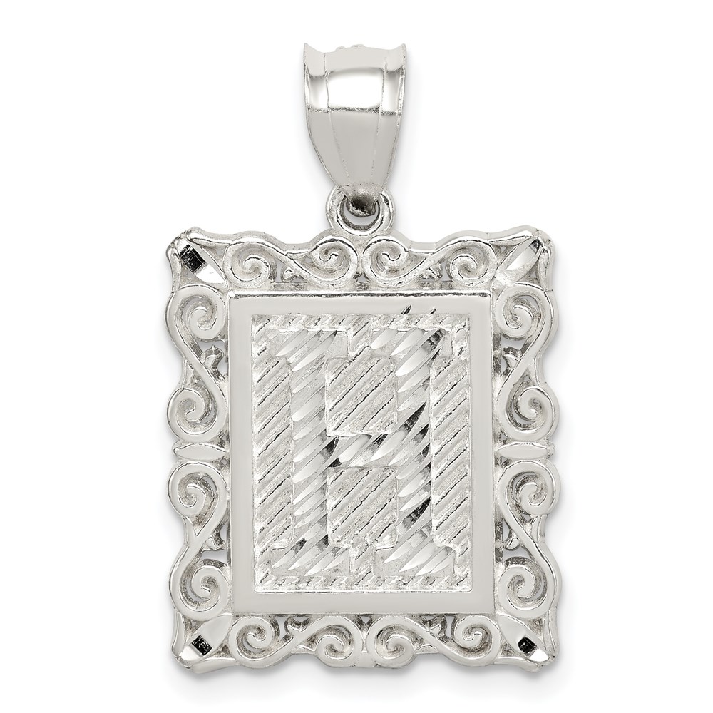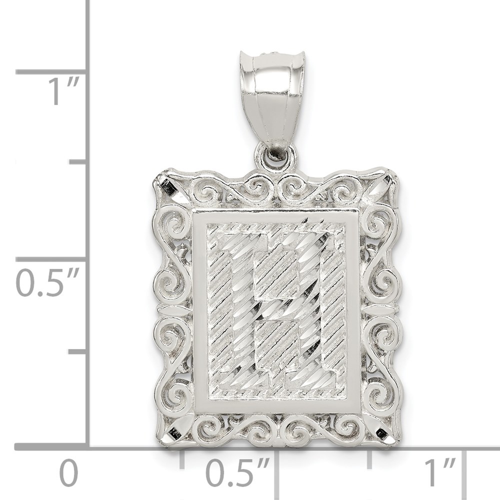 Sterling Silver Square Diamond-cut Letter H Initial Pendant