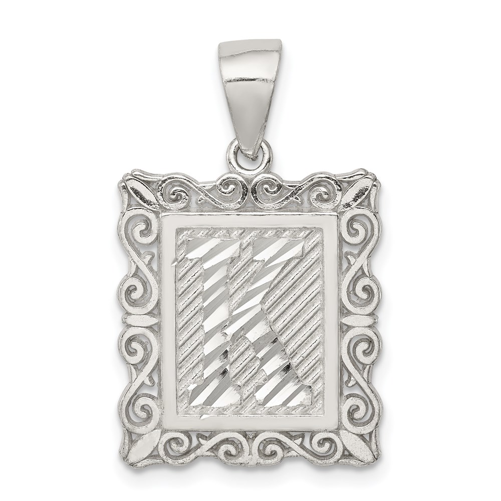Sterling Silver Square Diamond-cut Letter K Initial Pendant