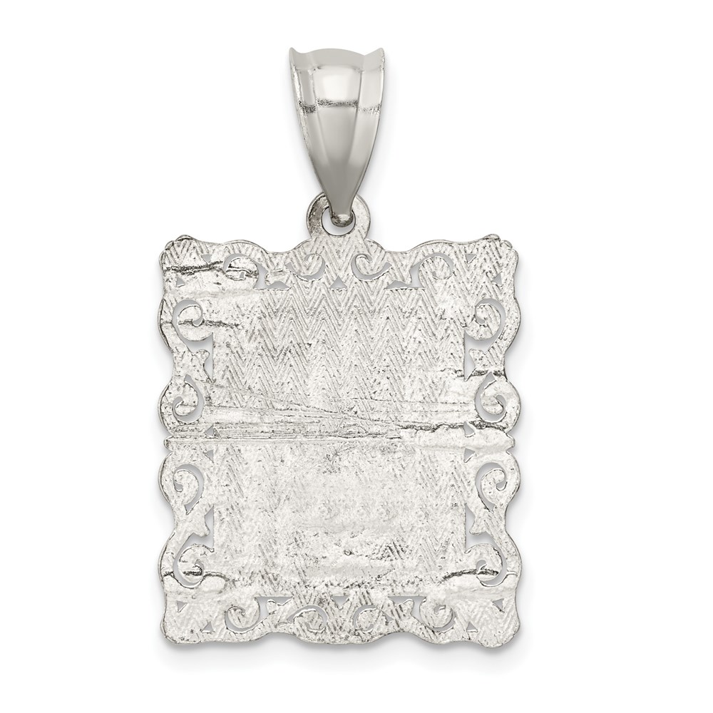 Sterling Silver Square Diamond-cut Letter N Initial Pendant