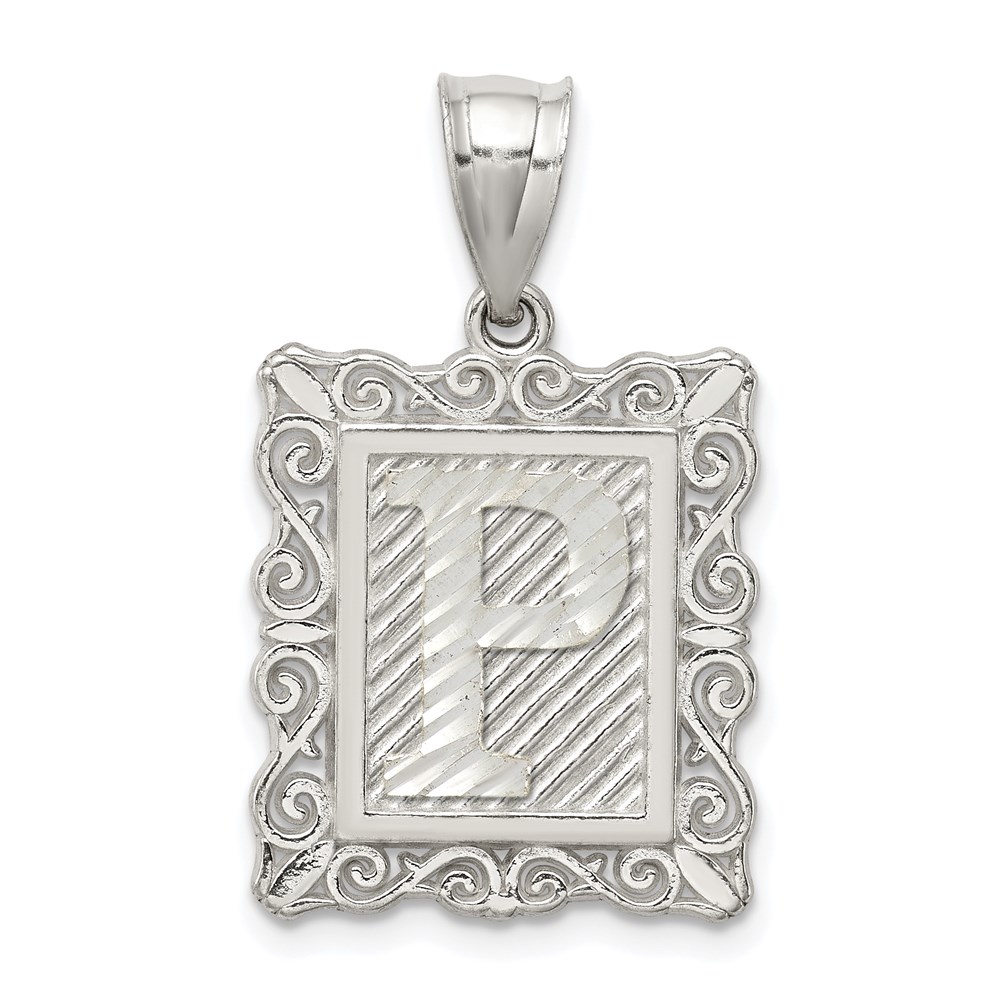 Sterling Silver Square Diamond-cut Letter P Initial Pendant