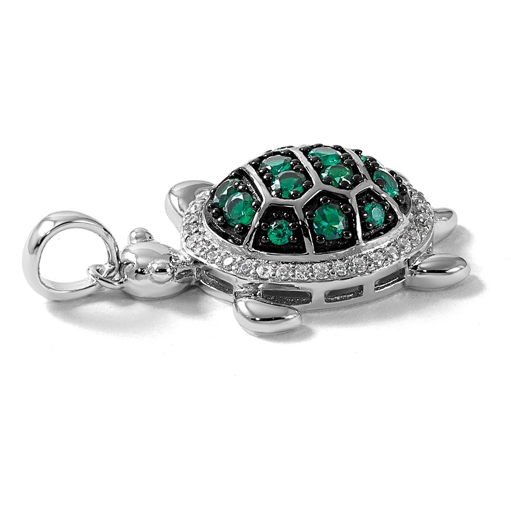 Sterling Silver White and Black Rhodium-plated White and Green CZ Turtle Pendant
