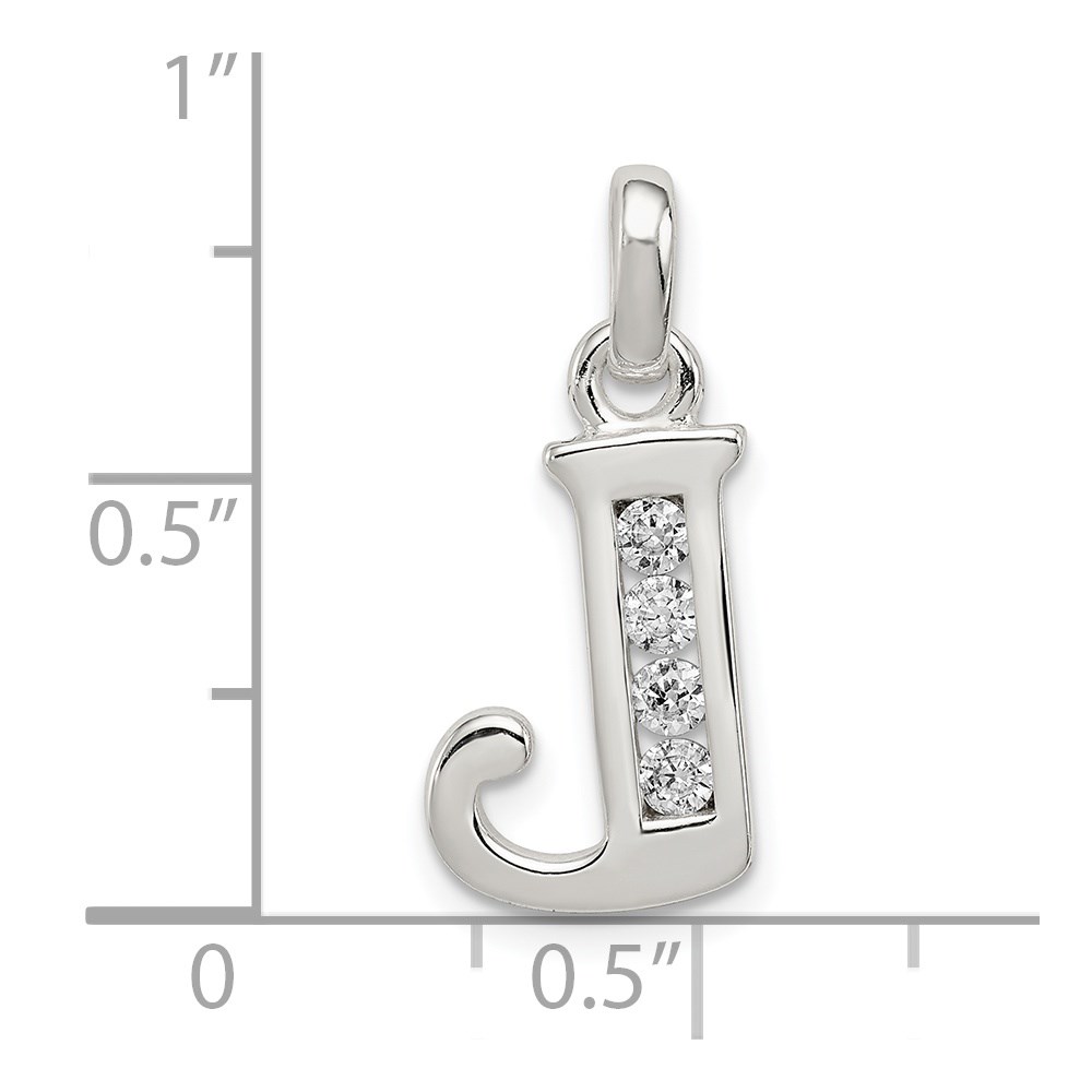 Sterling Silver White CZ Letter J Initial Pendant