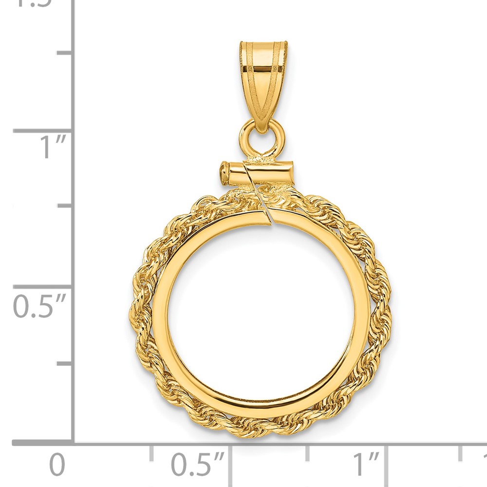 Wideband Distinguished Coin Jewelry 10k Polished Rope 16.5mm x 1.35mm Screw Top Coin Bezel Pendant