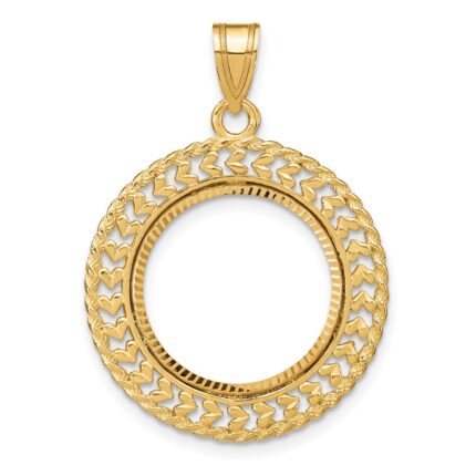 Wideband Distinguished Coin Jewelry 14k Polished Fancy 27.0mm Prong Coin Bezel Pendant