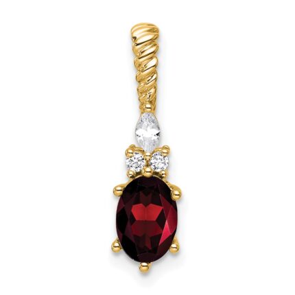 14K Diamond and 7×5 Oval May/Lab Created Emerald Twisted Chain Slide